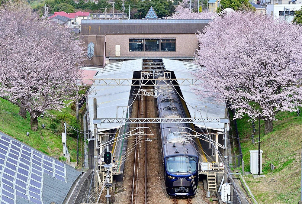また、2017年からは、駅のコンコースで桜をご覧いただける位置にベンチを設置し、お客さまにご好評をいただきました。ライトアップによって夜間の駅の雰囲気も大きく変わり、春限定の電車と桜のコラボレーションが今年も始まります。弥生台駅に是非お越しください。