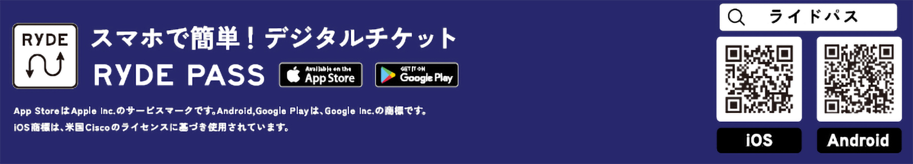 - アプリのダウンロードにつきましては「RYDE PASS」デジタル定期券についてをご確認ください。