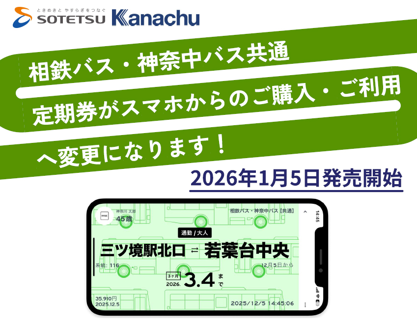 相模鉄道係員定期券発売所と神奈川中央交通横浜駅前サービスセンターでの発売は、2026年3月末日で終了いたします。