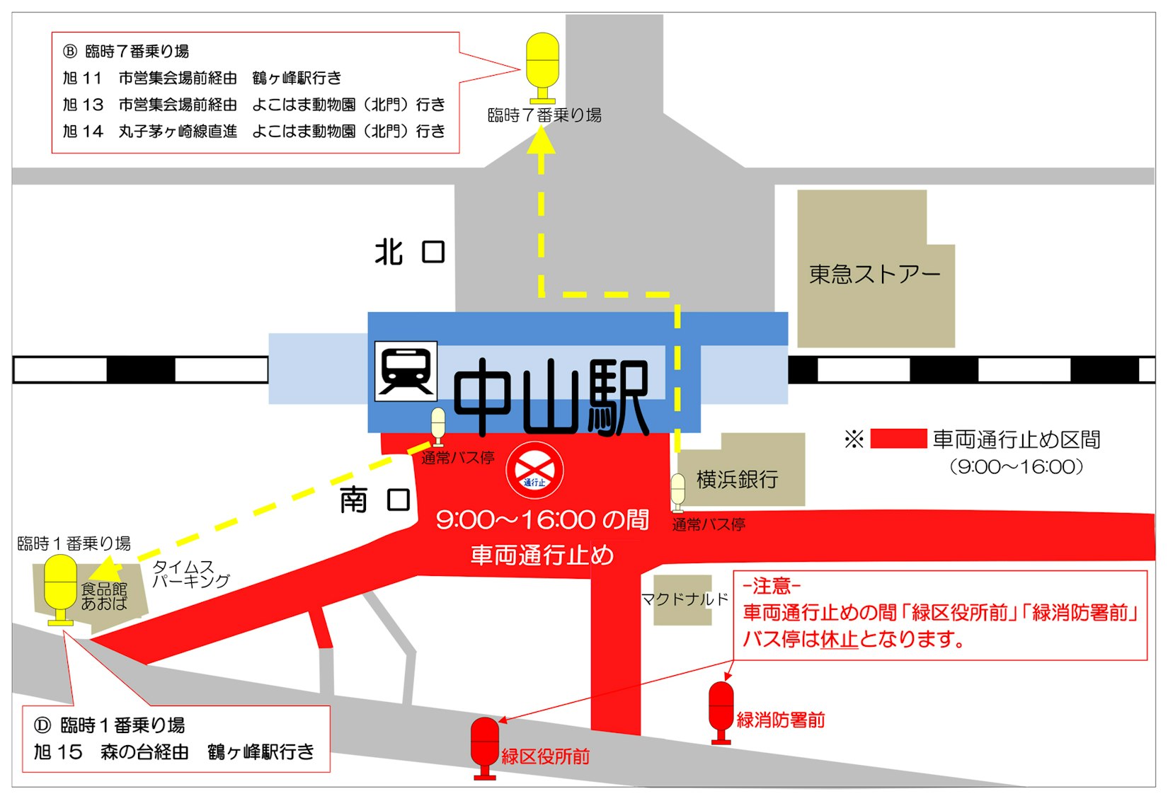 ※交通規制の間「緑区役所前」、「緑消防署前」バス停は休止となります。