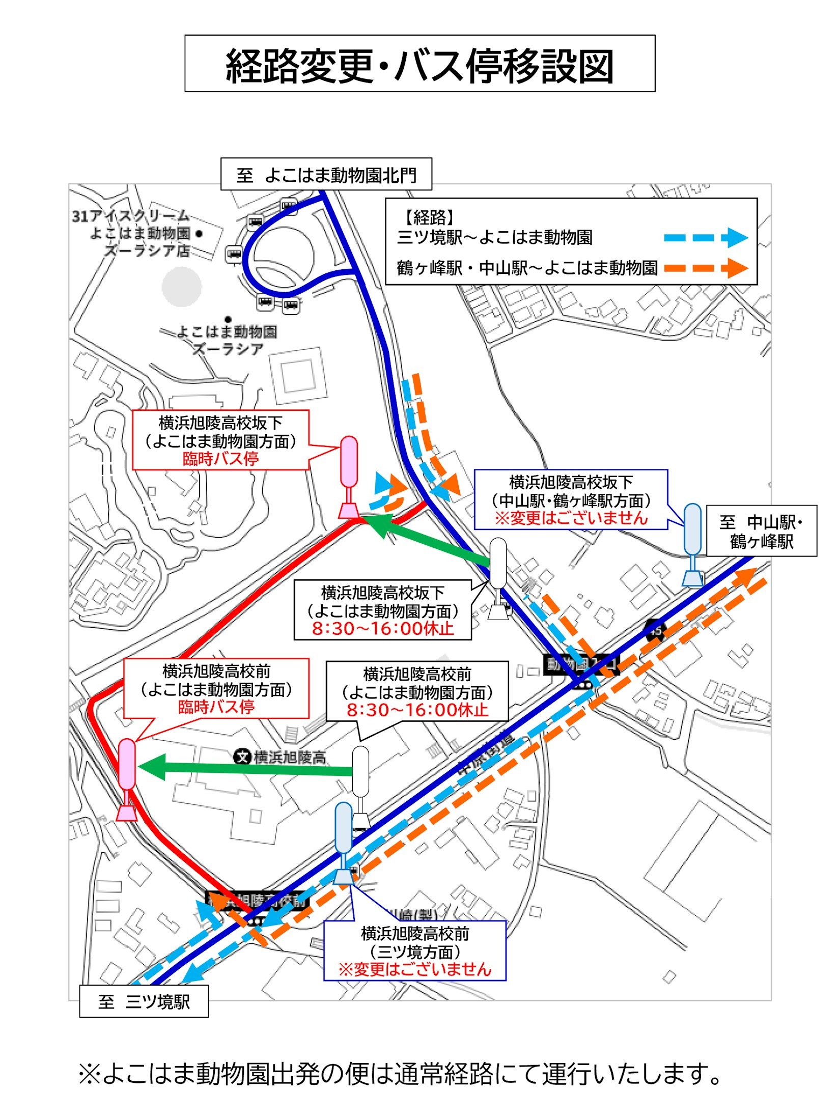 また、よこはま動物園発の便については、通常通りの運行を行ないます。