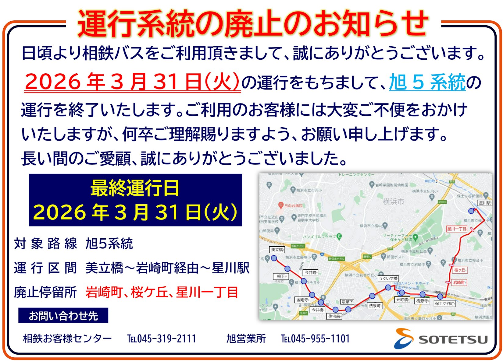 2026年3月31日(火)の運行をもちまして、旭5系統の運行を終了いたします。