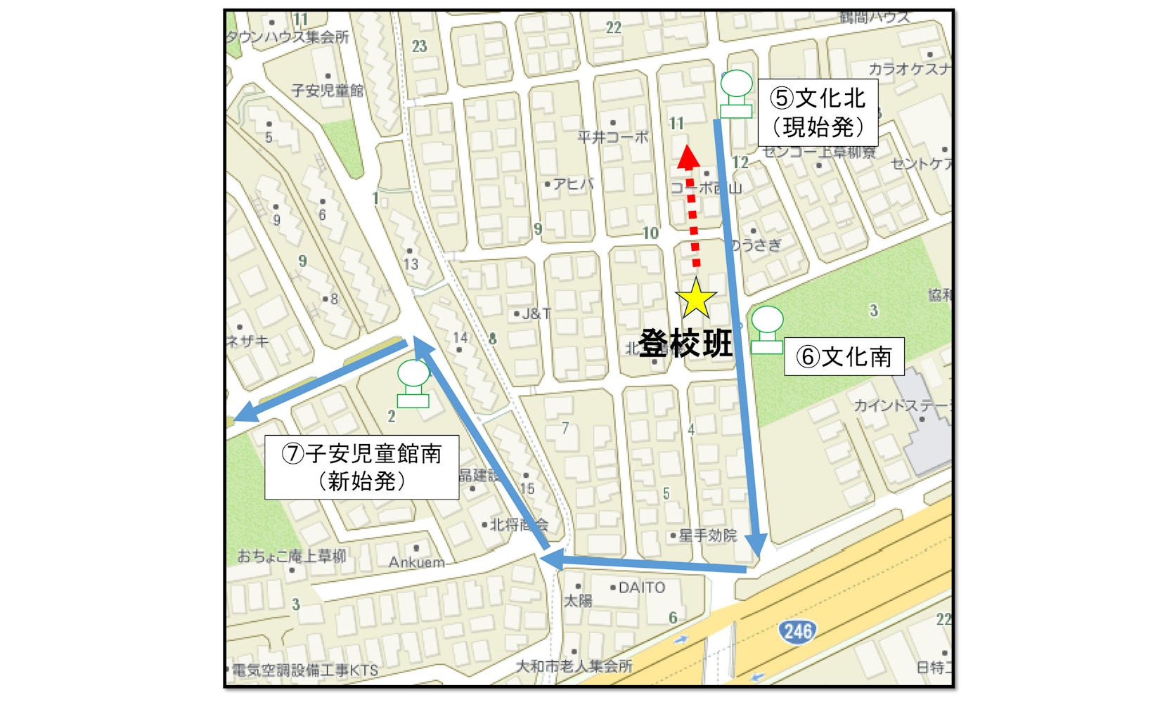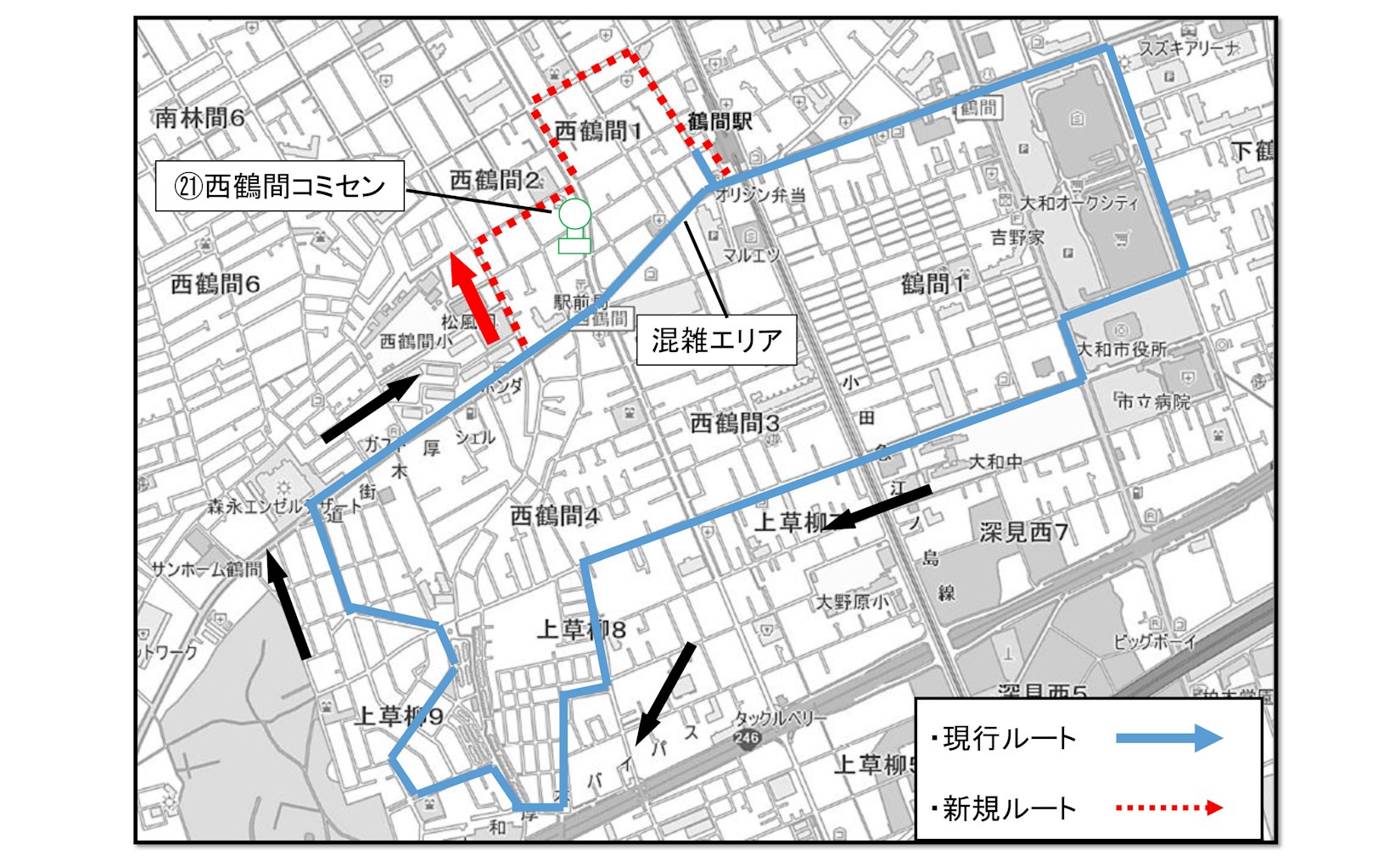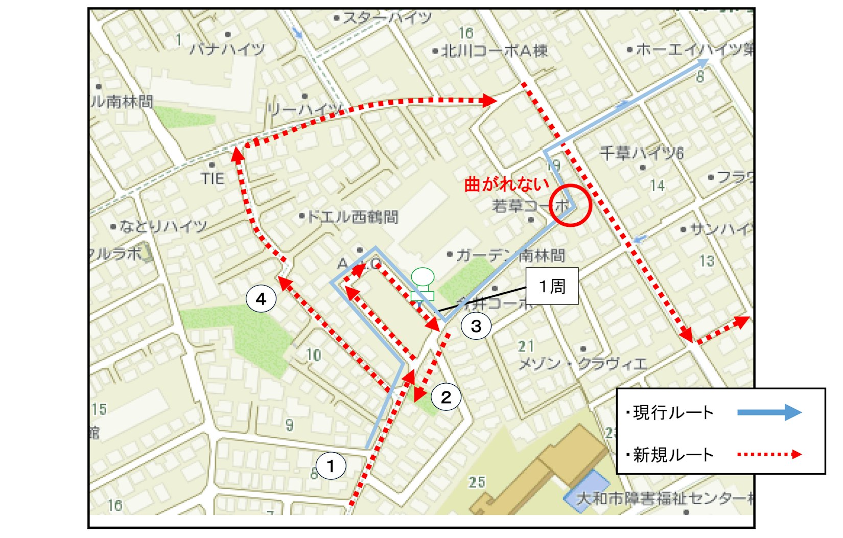 - 西鶴間5号公園バス停先のルート変更