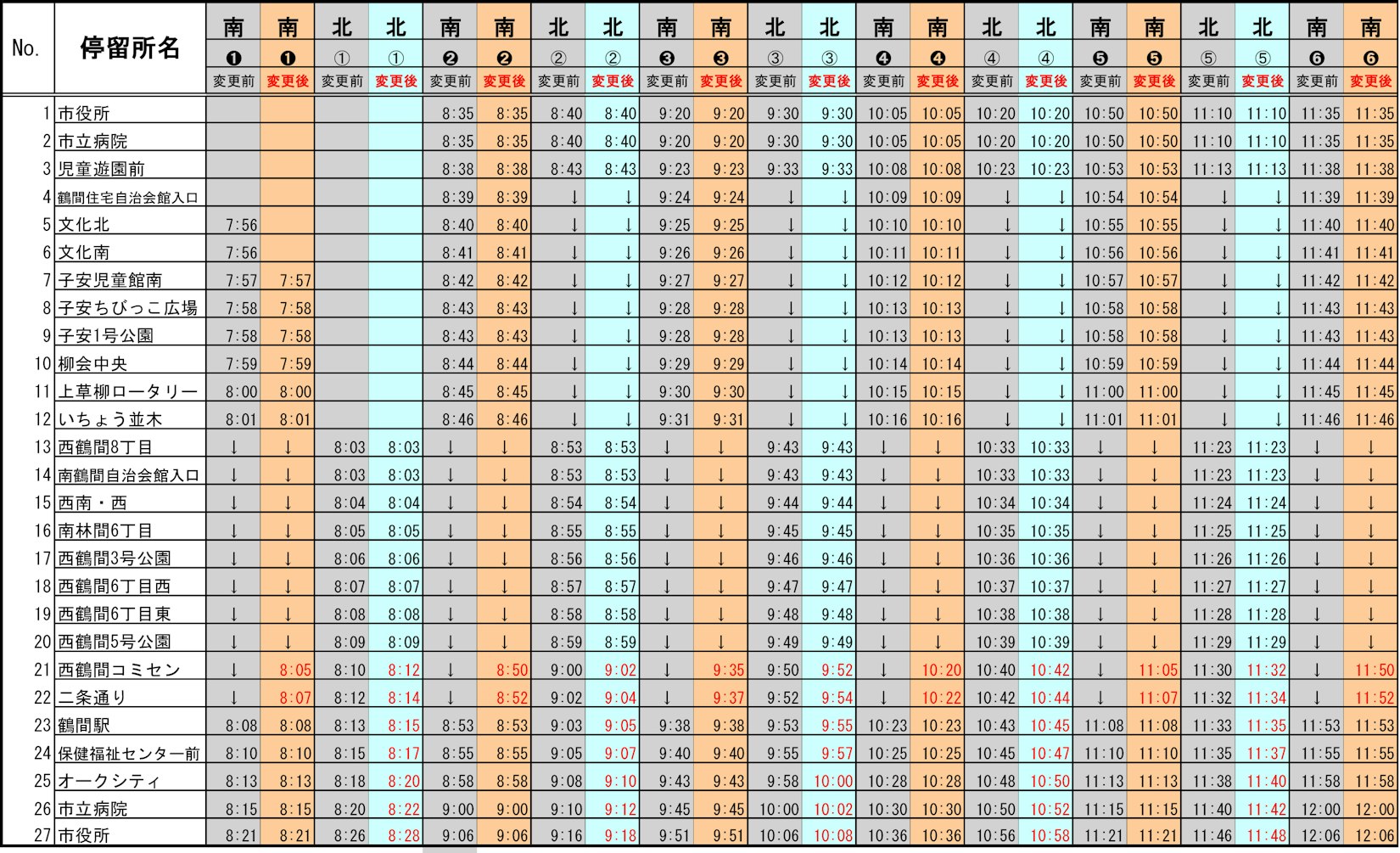 現行:【南ルート】文化北始発市役所行