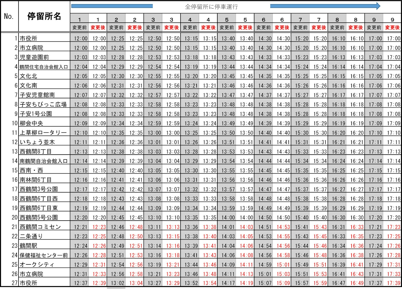 現行:【南ルート】文化北始発市役所行
