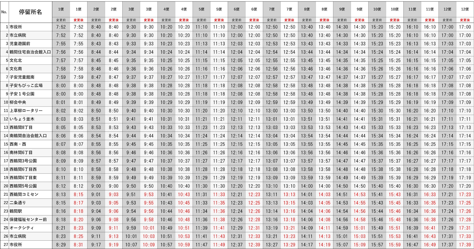 改定:【南ルート】子安児童館南始発市役所行