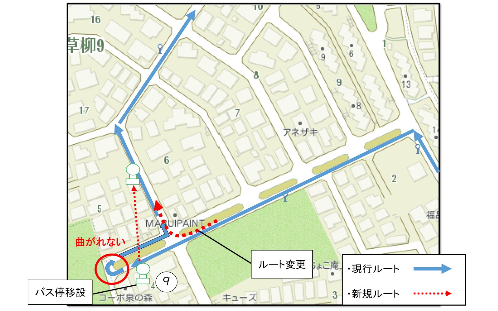 (2)南ルート始発バス停の変更