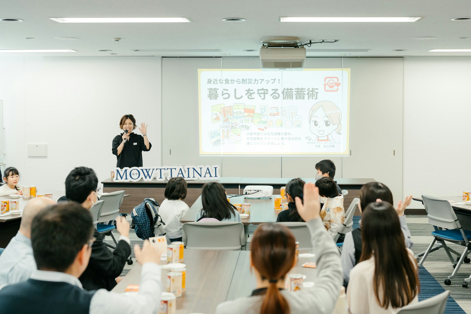 同イベントでは、アイスクリーム「MOW(モウ)」と一緒に災害備蓄品を最後までおいしく食べきる体験(MOWTTAINAI)を通じて、フードロス削減への理解を深めたほか、一般社団法人デイリーストックアクションの池上氏を講師に迎え、「暮らしを守る備蓄術」と題して、ローリングストック(※1)や、家庭でできるデイリーストックアクション(※2)に関する講演を行いました。イベントには相鉄グループの社員20人のほか、朝日小学生新聞の子供記者20人が参加しました。