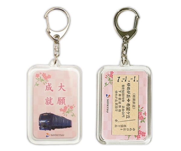 「ゆめきぼ切符(ゆめが丘駅~希望ケ丘駅硬券乗車券)」(以下、本乗車券)は、相鉄いずみ野線「ゆめが丘駅」と相鉄本線「希望ケ丘駅」の駅名から名付けた切符です。「ゆめ」と「希望」を持つ縁起の良い本乗車券は、毎年この時期、受験や就職活動のお守りとして大変人気があります。同キャンペーンの期間中は、本乗車券をご購入いただいた方に、相模鉄道キャラクター「そうにゃん」と2025年の干支である「巳(蛇)」をデザインした「そうにゃんピンズ」(全2種・駅によりデザインが異なります)と「オリジナル絵馬」をセットでプレゼントします。また、本乗車券をキーホルダーに入れて携帯できる「ゆめきぼホルダー」も販売しています。