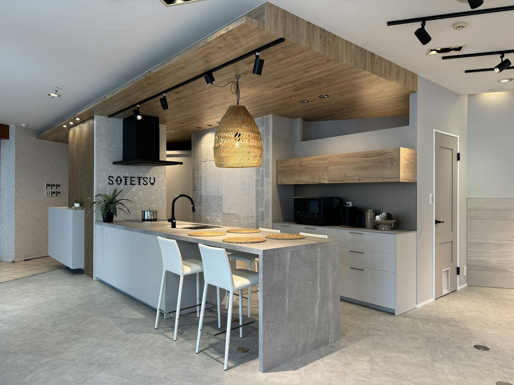 中央には「LIVE KITCHEN」と称した、近年SNSで話題の大型フルフラットキッチンを配置。最新IHや自動水栓、食洗器を体験いただけます。今後、地域の交流促進を目的に、料理教室や地域開放の場として提供する予定です。 - 実際に体感できる最新設備機器