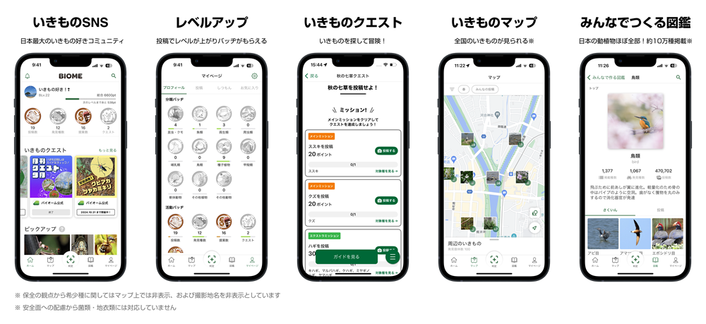 ※Biome独自のゲーム機能で、テーマに沿って選定された対象の生物種を見つけ、写真を撮影・投稿することでクリアできます。