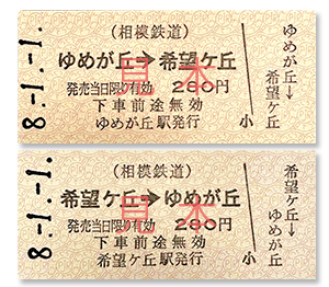 「ゆめきぼ切符(ゆめが丘駅~希望ケ丘駅硬券乗車券)」(以下、本乗車券)は、相鉄いずみ野線「ゆめが丘駅」と相鉄本線「希望ケ丘駅」の駅名から名付けた切符です。「ゆめ」と「希望」を持つ縁起の良い本乗車券は、毎年この時期、受験や就職活動のお守りとして大変人気があります。