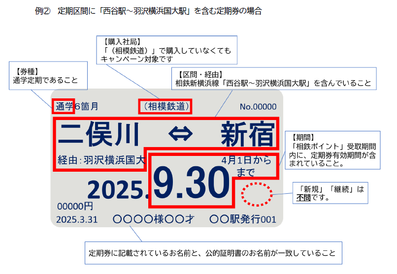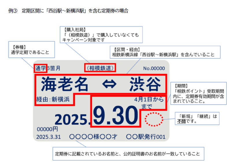 - 「相鉄ポイント」受け取り期間内〔2025年5月10日(土)~6月1日(日)〕に、定期券の有効期間が含まれていること