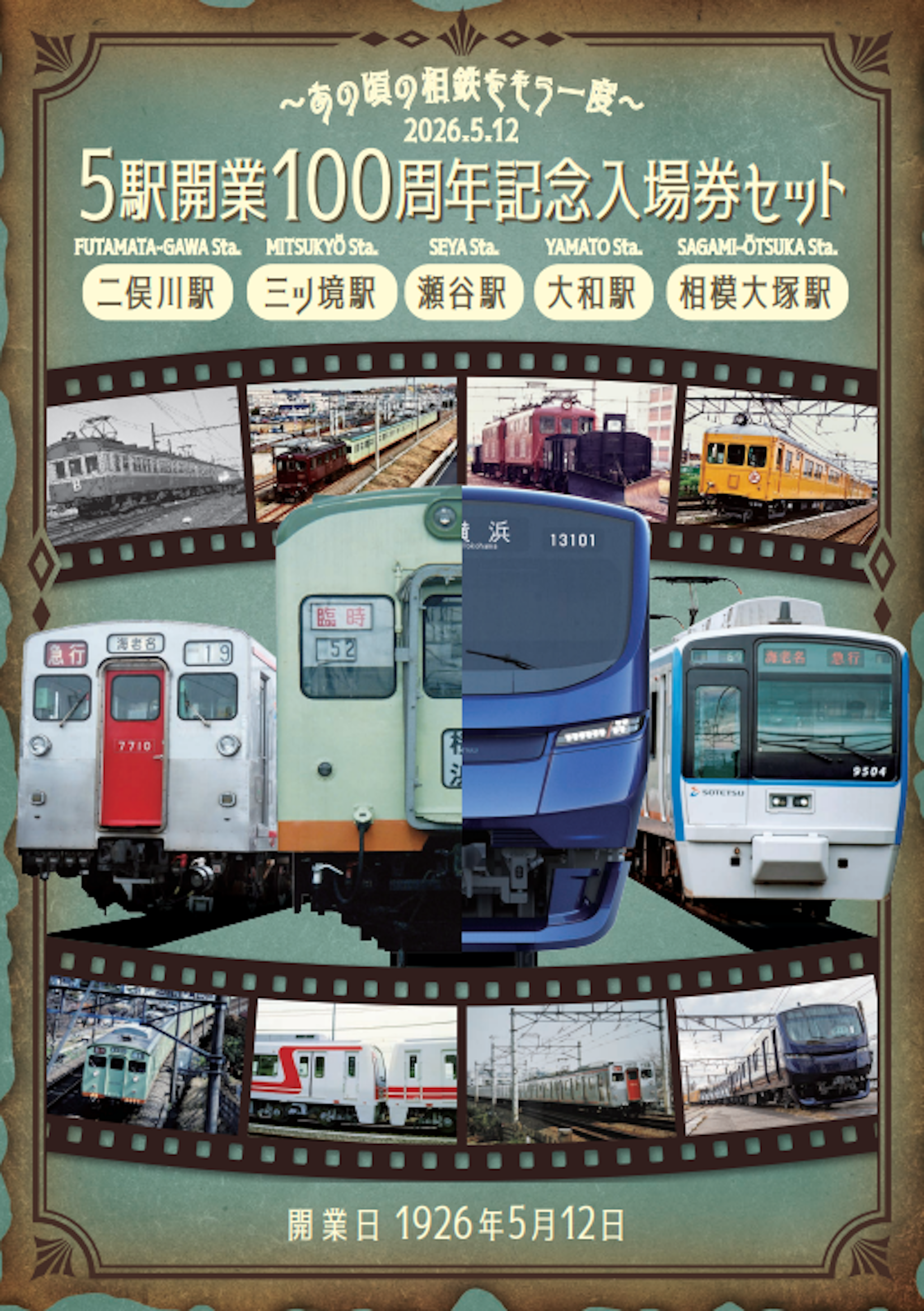 相鉄グループの相模鉄道㈱(本社・横浜市西区、社長・千原 広司)は、5月9日(土)から「5駅開業100周年記念入場券セット」(以下、同入場券セット)を発売します。
